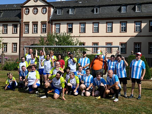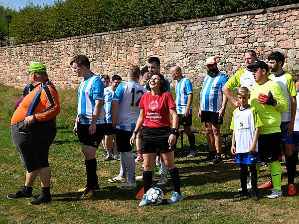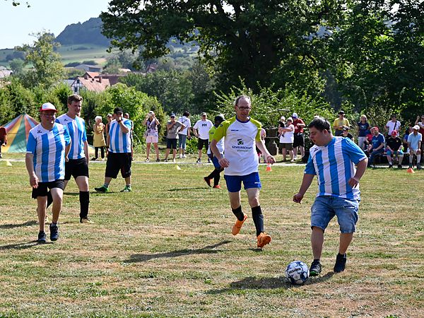 Bei all den Aktivitäten nach der Eröffnung konnten es viele nicht erwarten, bis endlich der Anstoß beim inklusiven Fußballspiel erfolgte; hier traten die Mannschaften der Gemeinschaft Altenschlirf und von Kompass Leben gegeneinander an. Kompass Leben war ersatzgeschwächt und so ging der Spielstand von 16:2 für die Gemeinschaft sicherlich in Ordnung. Dabei hatte Schiedsrichterin Johanna Ochs keine Probleme und kam ohne Verwarnungen aus.