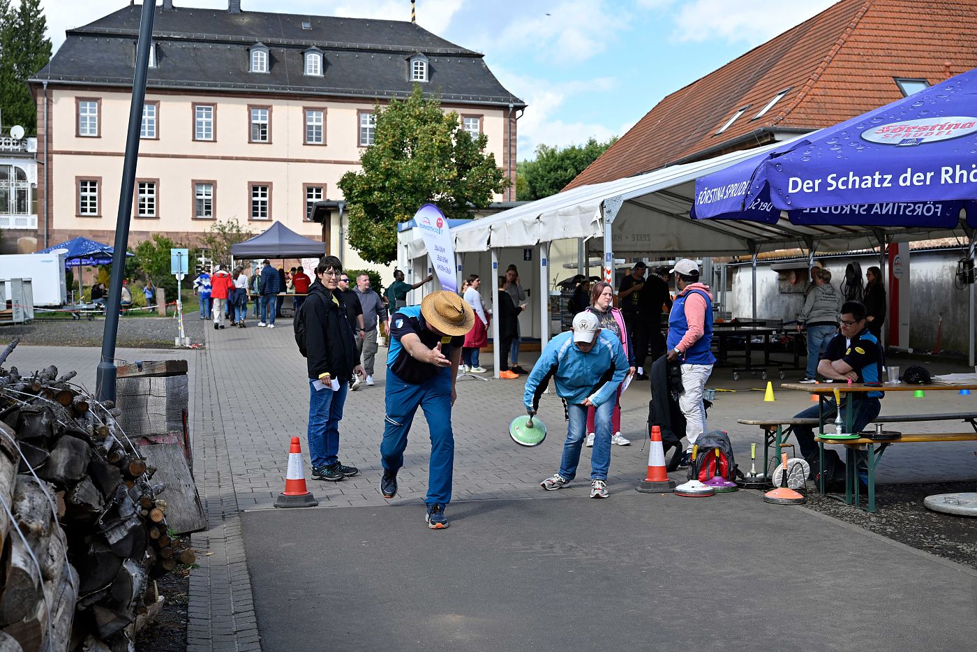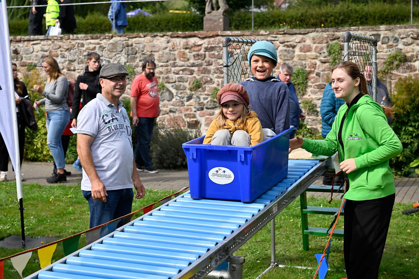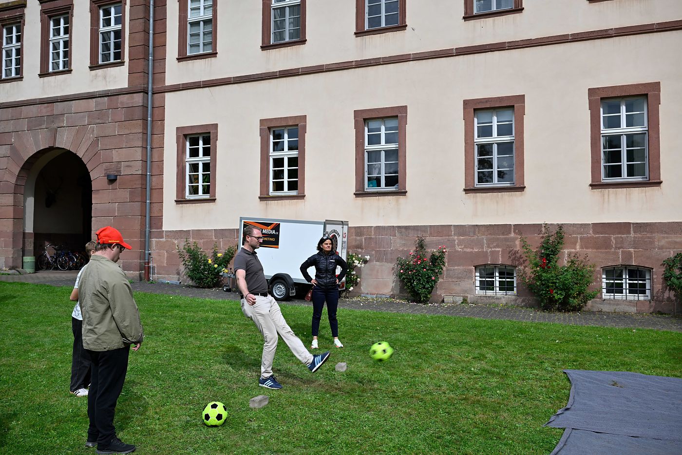 Es lohnte sich in jedem Fall, einfach mal auf Entdeckungsreise zu gehen, wobei viele Kinder auch ihre Eltern dazu überreden konnten, endlich mal wieder einen Ball zu kicken oder bei einem Wurfspiel ihr Glück zu versuchen. Und natürlich überzeugten sich auch Landrat Dr. Jens Mischak und die Herbsteiner Bürgermeisterin Astrid Staubach gerne persönlich vom munteren Geschehen vor Ort.Einer der Höhepunkte war ohne Zweifel das Fußballspiel mit der Mannschaft von »Kompass Leben« gegen »Gemeinschaft Altenschlirf« auf der großen Schlosswiese, das von Dominik Günther, dem Bewegungskoordinator des Vogelsbergkreises, eröffnet wurde. Die zahlreichen Zuschauer, die sich rundherum zum Anfeuern eingefunden hatten, spendeten reichlich Applaus und freuten sich über die ungebremste Leidenschaft für das runde Leder.