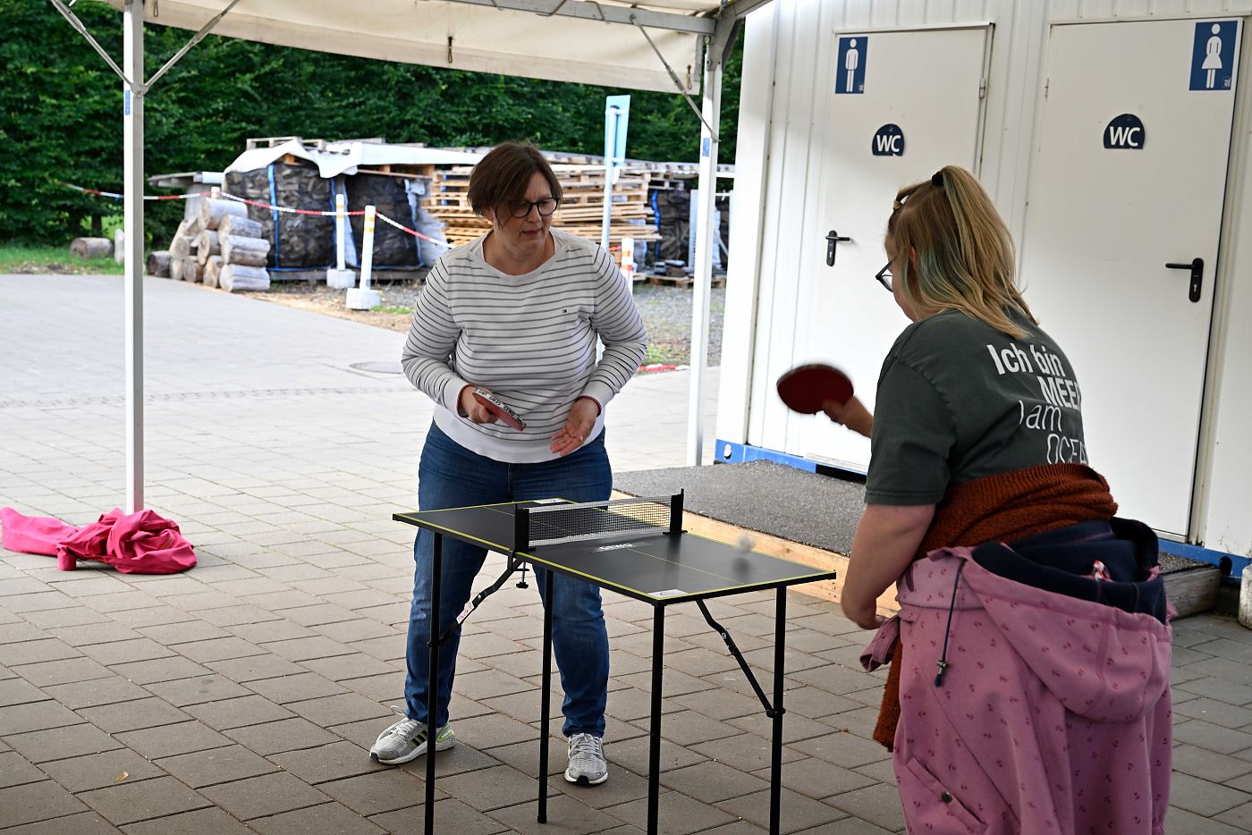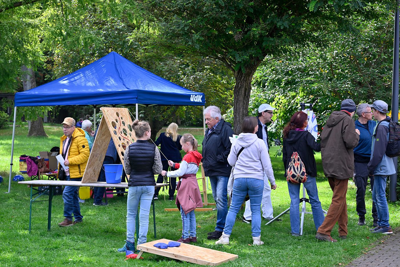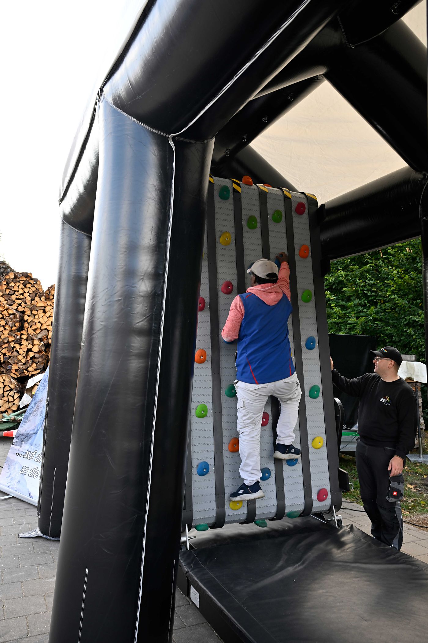 Es lohnte sich in jedem Fall, einfach mal auf Entdeckungsreise zu gehen, wobei viele Kinder auch ihre Eltern dazu überreden konnten, endlich mal wieder einen Ball zu kicken oder bei einem Wurfspiel ihr Glück zu versuchen. Und natürlich überzeugten sich auch Landrat Dr. Jens Mischak und die Herbsteiner Bürgermeisterin Astrid Staubach gerne persönlich vom munteren Geschehen vor Ort.Einer der Höhepunkte war ohne Zweifel das Fußballspiel mit der Mannschaft von »Kompass Leben« gegen »Gemeinschaft Altenschlirf« auf der großen Schlosswiese, das von Dominik Günther, dem Bewegungskoordinator des Vogelsbergkreises, eröffnet wurde. Die zahlreichen Zuschauer, die sich rundherum zum Anfeuern eingefunden hatten, spendeten reichlich Applaus und freuten sich über die ungebremste Leidenschaft für das runde Leder.